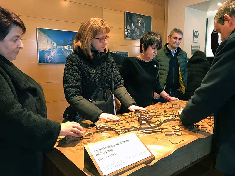 Los representantes de la ONCE en Segovia recorriendo la ciudad a través de la maqueta.