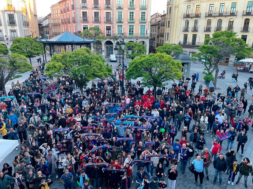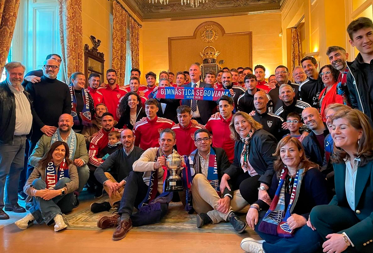 Con el tradicional posado desde la balconada del Ayuntamiento de Segovia, la plantilla de la Gimnástica Segoviana dedicaba su extraordinario ascenso directo a la 1ªF a la ciudad y, muy especialmente, a sus incondicionales, estos aficionados que desde 1929 son el aliento vital del club. Por los jugadores, el capitán, Manu, exhortaba a la afición a “seguir juntos el camino”, en tanto el alcalde, José Mazarías, avanzaba la intención del consistorio de incrementar la partida destinada a subvencionar el equipo, recordando que en 2025 la ciudad será “capital europea del deporte”.