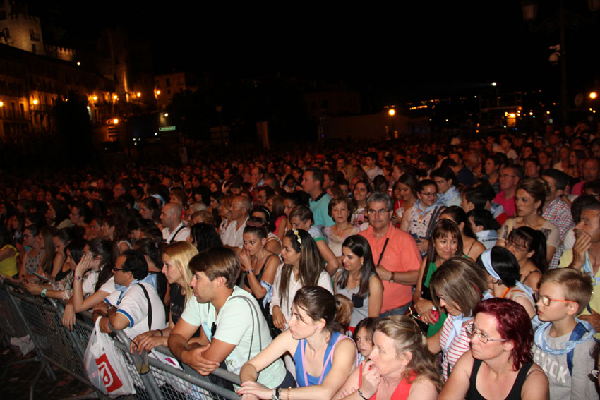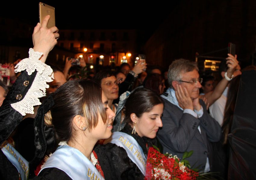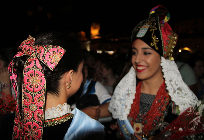 Pregón a 30 grados en el Acueducto; damas y alcaldesa fundidas entre las medias, la falda, refajo, blusa, chal; Bustamante, a pesar de aparentar que venía de trasegar dos cochinillos con patatas y mahonesa, energético, saltando valamor por aquí valamor por allá, con sus incondicionales jaleando en las primeras filas (para gustos...) Segovia en modo fiesta con un calor del demonio.
