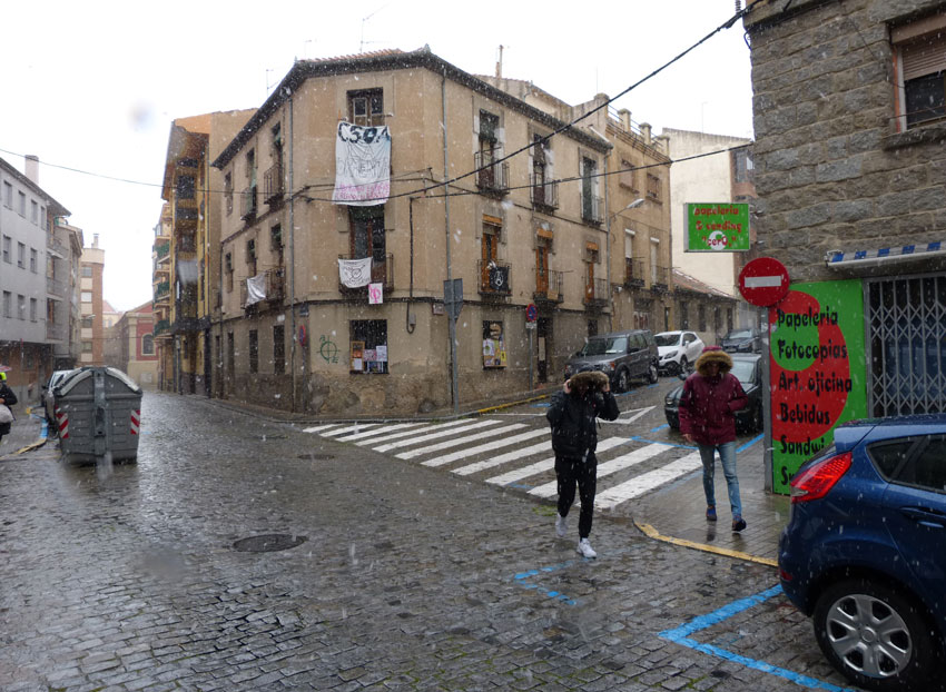 Esta es la cara típica del movimiento Okupa. La otra es hija de la crisis, familias deshauciadas o en situación de marginación, que terminan campando por alguna de las promociones dejadas a medio terminar por la crisis inmobiliaria. Este es el caso más común actualmente en España y en Segovia.