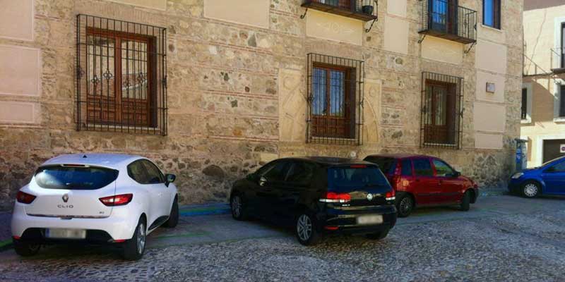 Aparcamientos en línea, batería y oblicuo en la plaza de San Sebastián.
