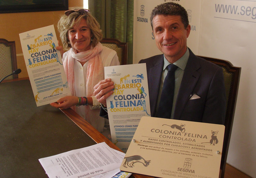 El Ayuntamiento de Segovia presentaba el 11 de enero las chapas identificatorias que se ubicarán en las 14 colonias felinas controladas en Segovia desde el pasado año y localizadas en Revenga, Fuentemilanos, Zamarramala, San José, San Millán, San Lorenzo, Santa Eulalia, Puente Hierro-la Fuentecilla, Nueva Segovia, La Albuera, el casco histórico, entre otros barrios. La medida persigue generar un clima de respeto tanto para los animales como para los cuidadores que se encargan de ellos, objetivo último del protocolo.