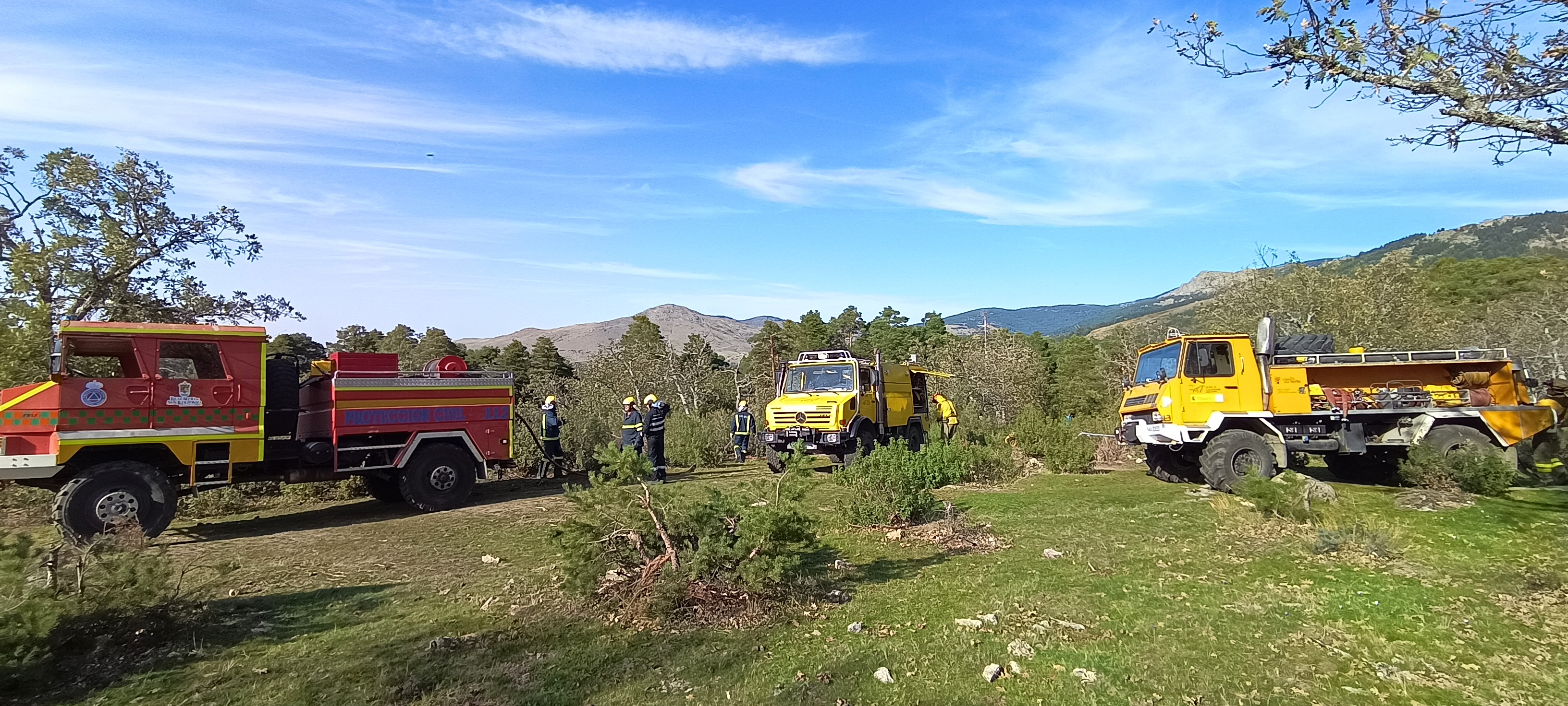 La semana pasada se llevó a cabo una práctica colaborativa entre diversos medios de los dispositivos de extinción de incendios forestales pertenecientes al Centro de Montes de Valsaín y Cabeza de Hierro del Organismo Autónomo Parques Nacionales, al Servicio Territorial de Medio Ambiente de Segovia de la Junta de Castilla y León Junta de Castilla y León, así como del Ayuntamiento del Real Sitio de San Ildefonso a través de Protección Civil y otros voluntarios.