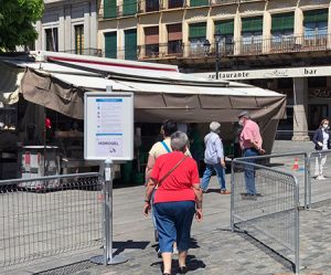 La cosa del mercado era sencilla: nueve puestos, sólo de comida, en fila india y un recorrido de dirección única —ancho, muy ancho— con los únicos requisitos de que había que entrar por un lado y salir por otro tras lavado obligado de manos con hidrogel —¿Para cuando un estudio serio de una universidad norteamericana, de Bostón, por ejemplo, sobre lo asquerosas que se te quedan las manos con el mejunje tras dos meses y medio usándolo?— y uso de mascarilla. Pues nada, chico, que los empleados municipales no paraban de dar explicaciones, en ocasiones con apoyo mas que recomendable de la Policía Municipal.