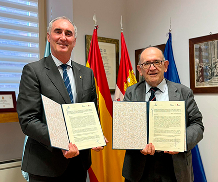 El alcalde de Segovia, José Mazarías, y el Consejero delegado de la Sociedad pública de Infraesructuras y Medio Ambiente (Somacyl), José Manuel Jiménez, han rubricado el convenio para la cesión de la parcela municipal ubicada en el barrio de San Lorenzo para la construcción de 16 viviendas protegidas para jóvenes.