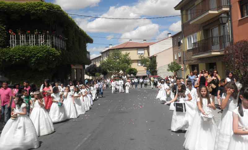 En Palazuelos, y apenas una hora antes, hubo procesión del Corpus, con especial protagonismo de los niños del pueblo que han tomado este año su primero comunión.