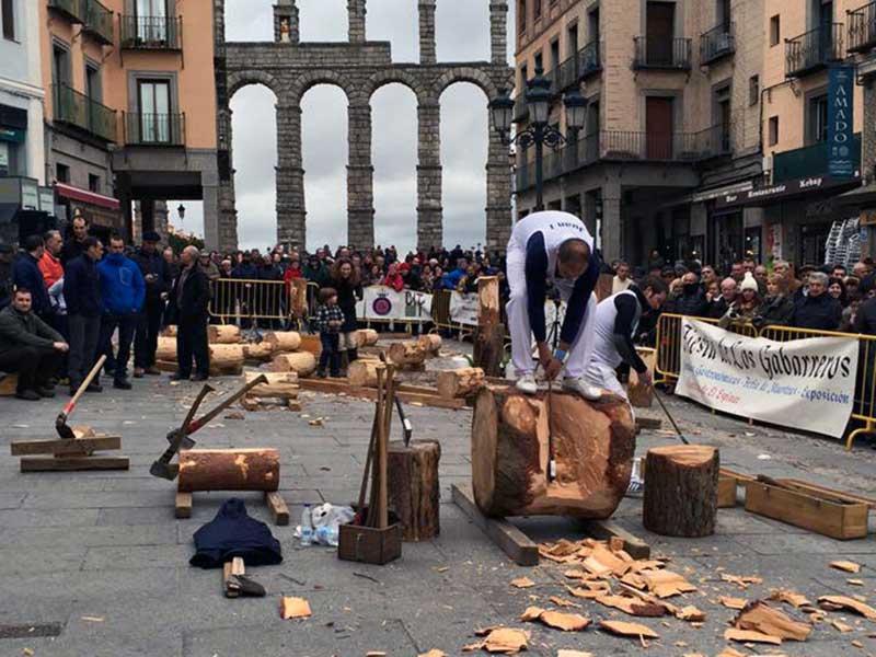Ya por la tarde, a las 16:30 horas, actuará el Grupo de Danzas Instituto Andrés Laguna, seguido de la gran corta de troncos por parejas con participantes del norte y del sur de la Sierra de Guadarrama (El Espinar, Valsaín, Cercedilla, Navacerrada y Revenga), la Sierra de Urbión (Covaleda), Asturias y País Vasco. La fiesta llegará a su fin a las 19:00 horas con la entrega de premios.