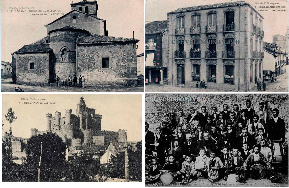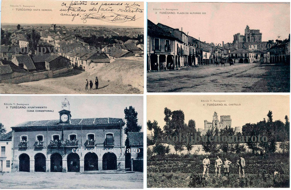 Postales nos. 1, 2, 3 y 4 de Turégano (serie V. Borreguero).
