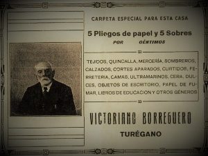 Un anuncio de propaganda del negocio indicaba: “La antigua y acreditada Casa-Comercio fundada el año 1836, y que desde 1878 gira en esta plaza [Turégano] bajo la razón de Victoriano Borreguero [antes Siro Borreguero]…”.