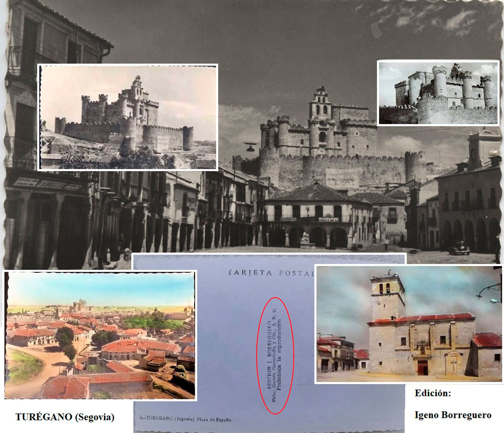 Postal nº 10 Turégano, serie ‘V. Borreguero’: montaje sobre foto Laurent.