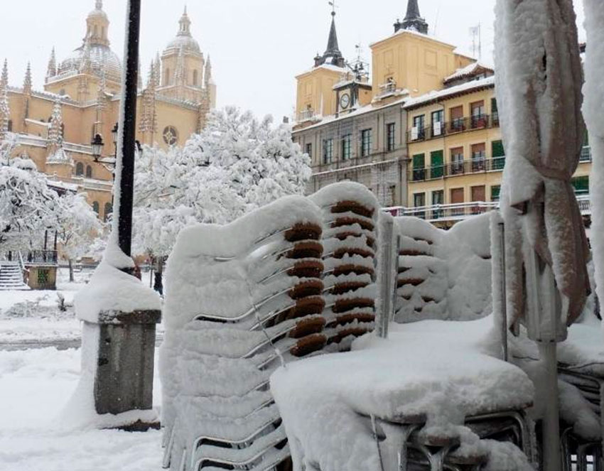 De la docena de terrazas de la Avenida Acueducto de Segovia, solo tres abrieron el lunes, ya en vigor las nuevas restricciones a la hostelería que les limita a servir en terraza. Ciertamente era un día complicado, con restos de nieve en muchas partes y un frío glacial, pero Jesús Castellanos, presidente de HOTUSE, la patronal de la hostelería segoviana, considera que no serán muchas más las que abran sus puertas en estos días. Calculan que un 25%, una de cada cuatro, el restos de bares cerrará sus puertas hasta que puedan operar con normalidad. “Creemos que será una situación parecida a la del cierre de noviembre, solo abrirán aquellos que daban cafés por la ventanilla”, explica.