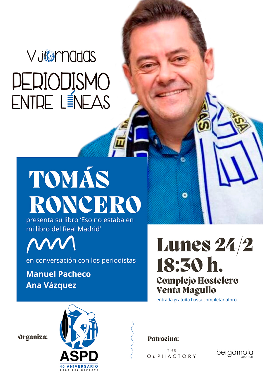 En esta ocasión, el periodista Tomás Roncero presentará su libro Eso no estaba en mi libro del Real Madrid en un diálogo con los periodistas Ana Vázquez y Manuel Pacheco.
