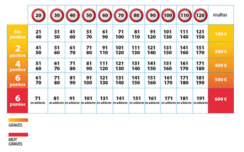 Las sanciones por superar la velocidad limitada se consideran graves y las multas por ello varían entre 100 y 600 euros además de suponer la retirada de hasta seis puntos en función de su gravedad.