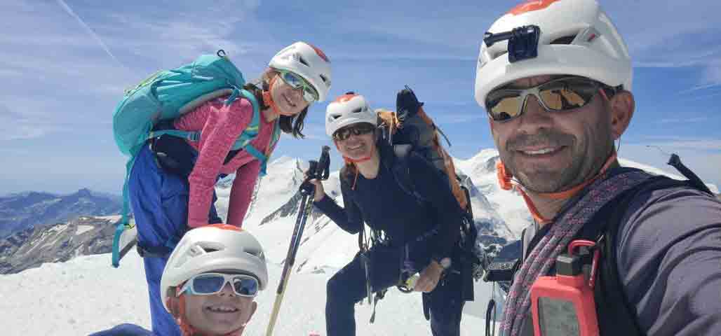 Todos ellos requieren un importante nivel físico y técnico, pero resulta que Saúl y Vega son hijos de dos expertos alpinistas como José María Jiménez y Celia Rubio, los cuatro pertenecen a los clubes de La Acebeda y Aguacero, la montaña ha sido parte de su vida prácticamente desde que nacieron, con la sierra de Guadarrama como escuela y en 2020 subieron por primera vez por encima de los 3.000 metros, en Pirineos. Este verano tocaba los Alpes donde pudieron realizar desde Italia la ascensión del Monte Breithorn y La Punta Giordani, montañas éstas que hacen frontera con Suiza.