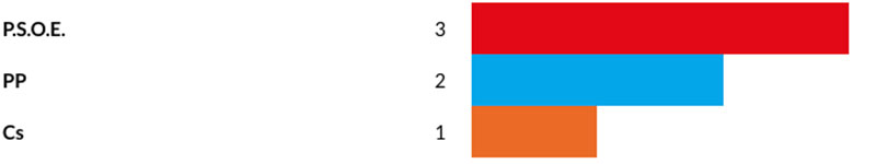 El PP, con 28.790 votos, según el escrutinio provisional, deberá conformarse con dos procuradores, Francisco Vázquez y María Ángeles García. Debuta por Ciudadanos en política Marta Sanz, formación que ha obtenido en Segovia 14.047 votos.
