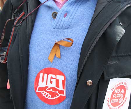 “Soy viejo, no tonto”, exclamaba otro manifestante. A 31 de enero, los jubilados españoles han visto que frente a subidas de 1€ de sus pensiones, la luz, los alimentos, algunas medicinas, van a un ritmo mucho mayor. Hay miedo y un muy interiorizado sentimiento de que si se empiezan a tocar las pensiones no vale la pena sostener al actual Gobierno. La reacción ha sido colgarse un lazo del mismo color que el incremento de las nóminas: “el lazo de mierda”