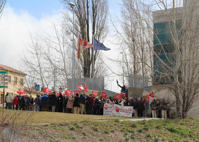 Convocados por CCOO y UGT, unos 80 pensionistas segovianos se concentraron ante la sede de la Seguridad Social en Segovia, siguiendo la movilización nacional por unas pensiones dignas y en protesta por el incremento del 0.25%  acordado por el Gobierno para 2018. Un incremento que, descontada la inflación, queda en una pérdida del 0.75% del valor real de las pensiones, muy lejos de los compromisos de mantener la capacidad adquisitiva de los 8.6 millones de españoles que, tras años de cotización, perciben pensión de jubilación. Uno de cada cuatro  en Segovia.