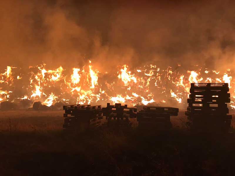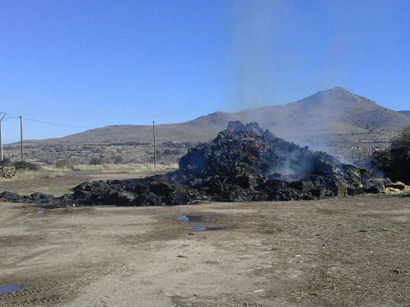 Los propietarios de una finca ganadera ubicada en las inmediaciones del Pontón, cerca de la carretera de la Granja creen que el incendio que acabó con unas 3.000 balas de paja apiladas en la finca fue provocado al haberse comprobado que las llamas se iniciaron simultáneamente al menos en tres puntos, según han confirmado a esta redacción.