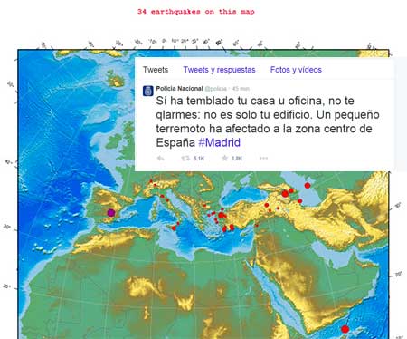 Mensaje de la Policía Nacional en twitter emitido tras el terremoto de 5,4 grados con origen en Albacete.