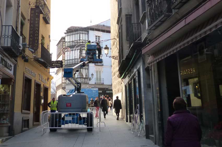 El Ayuntamiento no ha facilitado este año el listado de calles que contarán con adornos navideños —entre los que no faltarán las celebradas variaciones del esgrafiado segoviano— aunque se da por hecho que estarán presentes en las principales vías comerciales y avenidas de la ciudad, así como en los pasos “obligados” del casco antiguo, además de los adornos habituales en las plazas de San Lorenzo, San José y La Albuera, así como en el depósito de agua de Nueva Segovia —el Pirulí— visible desde larga distancia desde distintas carreteras de acceso a la ciudad.