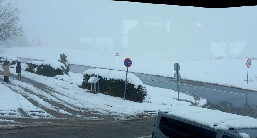 AEMET prevé débiles nevadas hasta la medianoche, cuando se considera que van a concluir el chubasco de nieve. Para el domingo la probabilidad de nieve es baja pero a partir de las 8 de la mañana se espera la entrada de aires muy fríos que podrían llevar el termómetro hasta los –4 grados con temperaturas que no subirán del punto de congelación hasta la noche. En consecuencia, un domingo muy frío que congelará los acumulados de nieve dificultando ahora de verdad la movilidad tanto peatonal como rodada. Será un racha de frío que se espera dure unas pocas horas pero, a continuación, se espera la entrada de otro frente húmedo el lunes con alta probabilidad de nevadas aunque temperaturas menos álgidas.