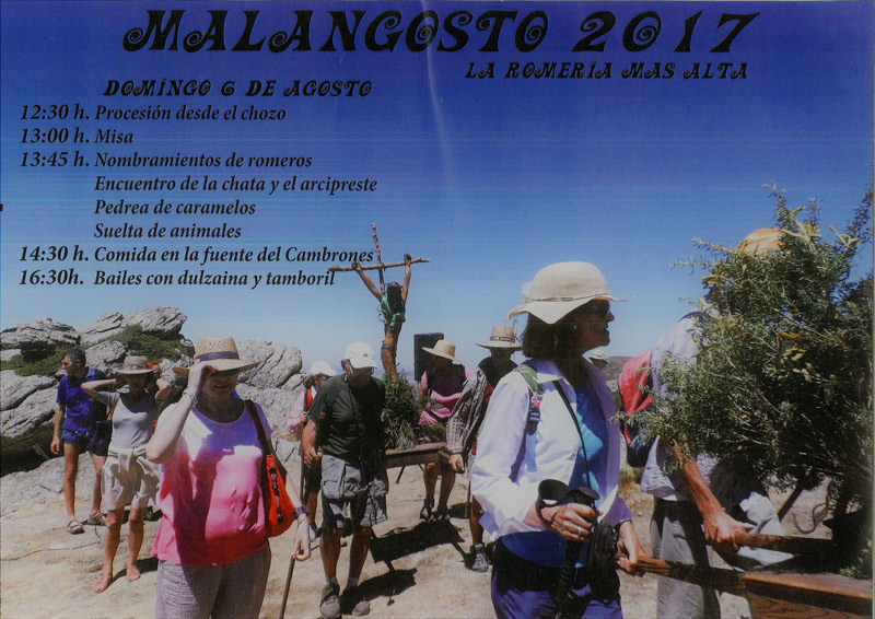 El Cristo del Buen Amor y la Virgen de la Sierra, serán trasportados por los romeros hasta las cumbres de la serranía del Malagosto, con posteriores festejos, junto al chozo denominado de la Chata y el manadero del origen del río Cambrones.