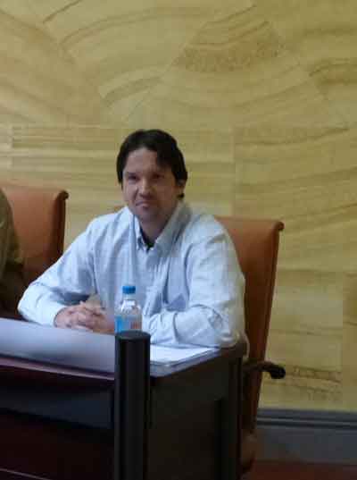 Pero antes, toma de posesión del nuevo concejal de IU, que sustituye a Nicolás Hervás. Le correspondía la silla a la segunda de la lista, Rosario Peromingo, que alegando “exceso de trabajo” renunció al acta, dando paso al tercero, Tomás Menéndez, de 37 años, madrileño pero afincado en La Granja desde hace décadas y trabajador de Suministros Transcose. El “nuevo” acudió acompañado de los más veteranos de la formación, entre el público, Luis Peñalosa, Conchita Domínguez, Domingo Asenjo, y el coordinador provincial, José Ángel Frías.