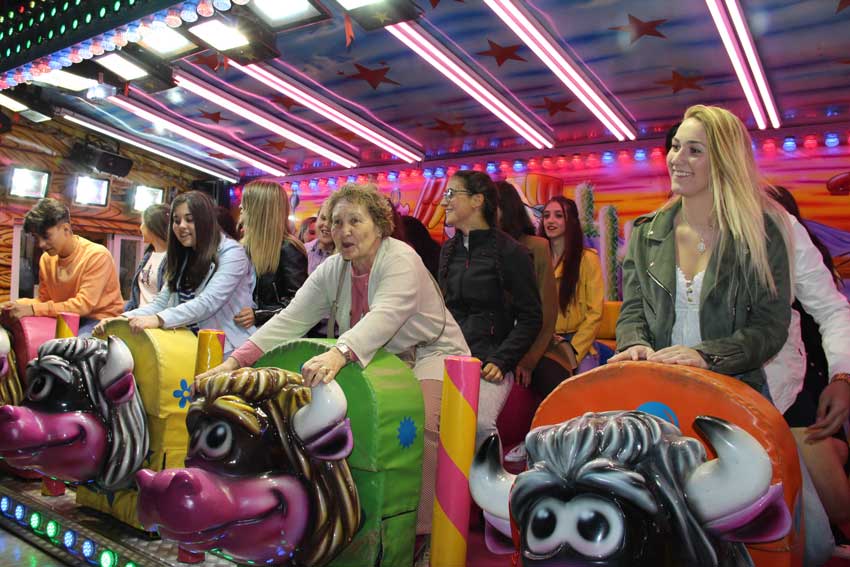 Alcalde, damas y mozos, disfrutando de las ferias. Arriba, encendido del ferial.