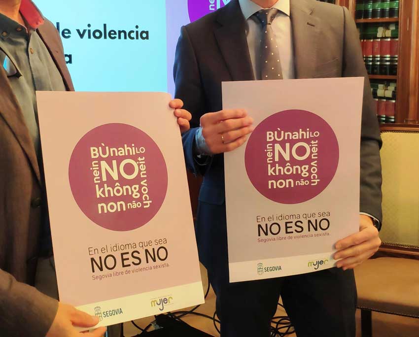Valga la redundancia. Un año más y coincidiendo con las fiestas, el consejo de la Mujer de Segovia recuerda que “no es no“. Campaña específica que tiene como objetivo insistir en el respeto y el trato igualitario hacia las mujeres, independientemente del momento del año y las circunstancias. Se han editado 2.000 folletos informativos y 5.000 pulseras, de color azul, realizadas desde la concejalía de Cultura. También en colaboración con la AIHS se ha incluido el lema en las servilletas ecológicas (54.000), colaboran en la iniciativa los establecimientos cervecería Kokora, El secreto de San Clemente, Haggen Bar, Taberna Rubí, restaurante Pasapán, De bote en bote, El cochifrito, restaurante Casares, restaurante la Codorniz, El desván, El café de san Millán, restaurante Coma restobar y La fonda ilustrada Juan Bravo.