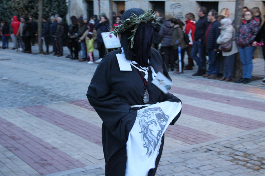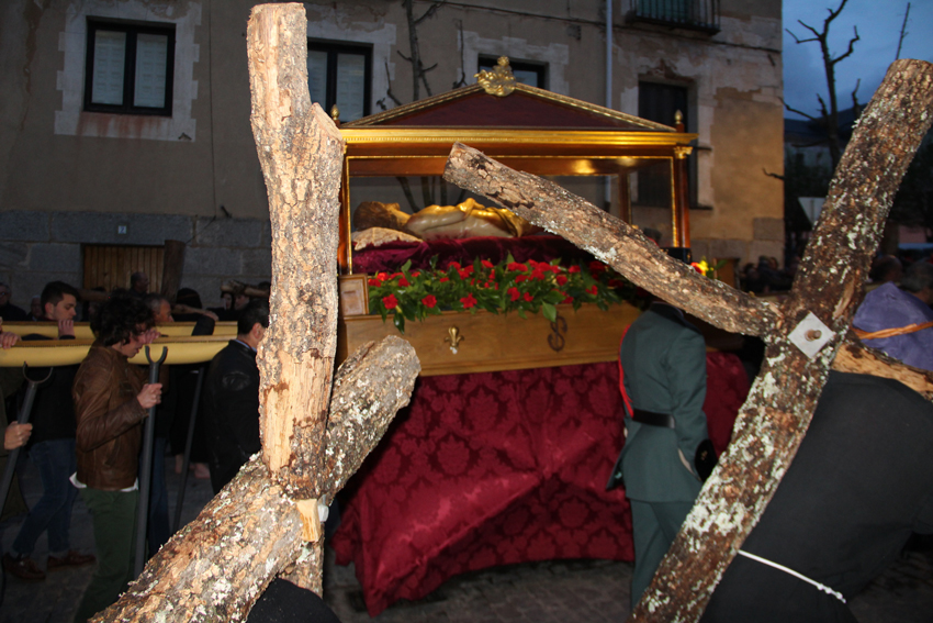 Abren paso los "sanjuanines", los niños que este año tomarán la comunión portando en andas al Niño Jesús. Le sigue el Cristo de los Alijares, el yacente y la Dolorosa, con acompañamiento de banda. Detrás, consistorio y fuerzas vivas. No hay nazarenos y un escrupuloso silencio al paso de los esforzados penitentes.