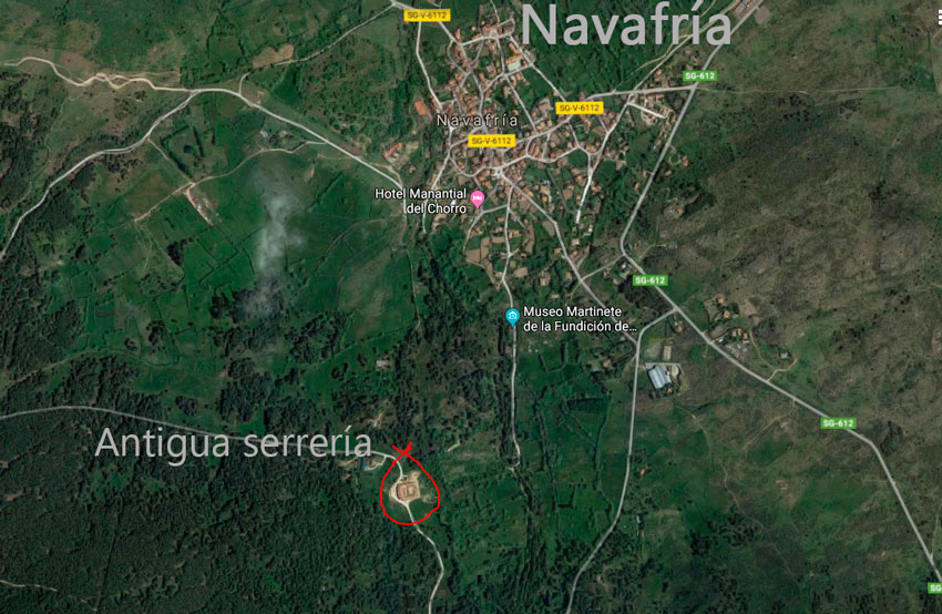 Que se sepa, el edificio ya estaba construido, de ahí que en la foto aérea figure lo de “antigua serrería” (fuente Ecologistas en acción).