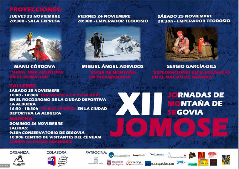 Los días 23, 24, 25 y 26 de noviembre tendrán lugar las “XII JOMOSE” (Jornadas de Montaña Segovianas), organizado por el C.D. Aguacero con la colaboración de los Grupos de Montaña segovianos: ‘El Nevero’, ‘La Acebeda’ y ‘Diego de Ordás’.