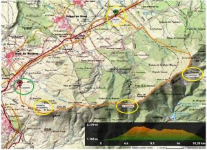 La Salida (8:30 h. de la mañana) estará situada en la entrada al antiguo complejo ‘Cine Panorámico’, (1121 m) en el término municipal de La Losa.