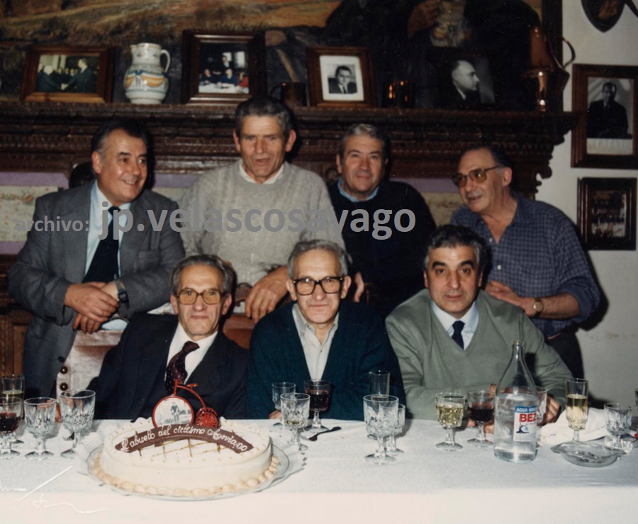 José María Heredero, Ignacio Matarranz, Santamera, Aznar, Enrique Velasco, Lucio Velasco y Justo Muñoz, en el homenaje en ‘Cándido’ a Lucio.