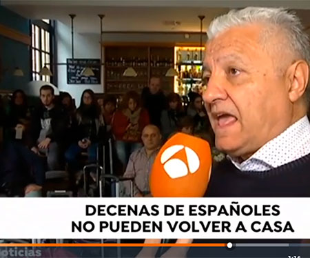 No me consuela, para nada, la riada de españoles -donde usted esté siempre habrá un español y varios segovianos- que me cuentan su epopeya. Los casi treinta teatreros de Fuentepelayo y su periplo, calcado al mío, sólo que ellos volaban con Iberia, igual de ineficaz en las respuestas que mi operadora irlandesa y que a ellos les sacan en la tele y les echa una mano la entidad bancaria. También está mi amiga, esposa de funcionario, que logró llegar aquí el sábado pero que no se ha mudado desde hace cuatro días porque su maleta de bragas anda por ahí perdida, no sabe si en España o en Bélgica. Otra amiga que tenía que estar en Segovia hace dos días y sigue aquí mientras su hija, a la que no ve hace semanas, ha agotado ya todas las latas que quedaban en la despensa y acumula toneladas de necesidad de amor de madre mientras esta mira impotente la tablilla de vuelos cancelados. O esa pareja tan simpática que venía con la pasta justa –yo no, yo trabajo en acueducto2.com y estoy tirando de la tarjeta de empresa con la soltura de un diplomático con dietas como puede suponer- a la que la compañía aérea le ha dicho que adelante gastos y a la vuelta venga con las facturas del hotel y ya hablaremos…