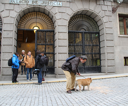 Periodistas a la puerta del juicio por Caja Segovia (y Damián).